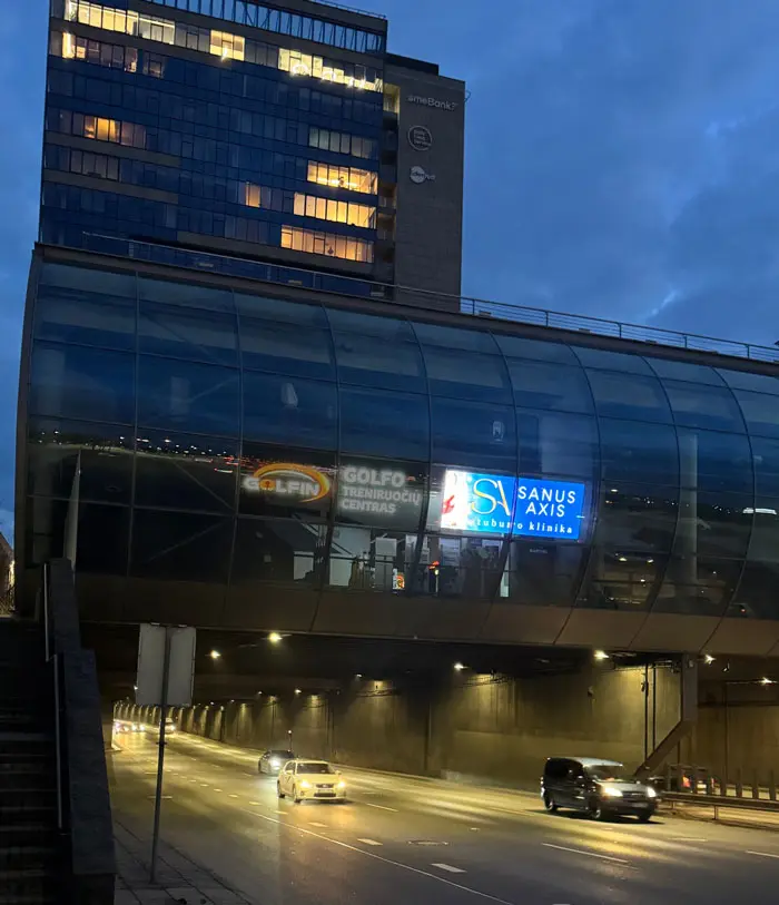 Reklama rodoma didelio srauto zonoje, užtikrinant aukštą kontaktų skaičių kasdien. Ekranas veikia kasdien