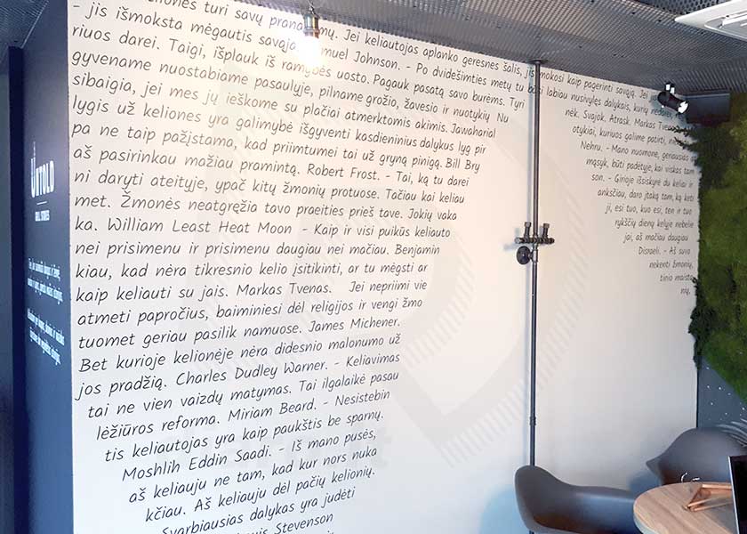 Nuo vidaus iki lauko pilnas reklaminis apipavidalinimas.